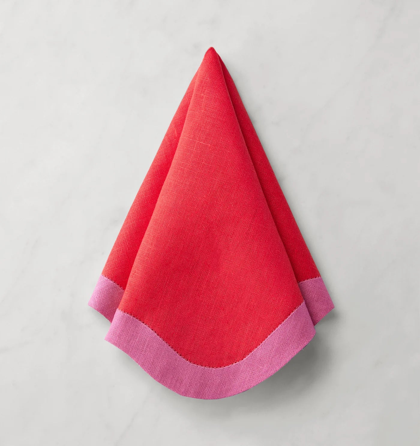Our exquisite Ondulato collection of pure linen dinner and cocktail napkins were inspired by the graceful undulation of waves. Each napkin is meticulously crafted from our Festival linen to capture the serene beauty and rhythmic flow of the ocean, bringing a touch of coastal elegance to your dining experience. Perfect for both casual gatherings and sophisticated soirées,  these napkins, available in three two-toned color ways, add a refined, yet relaxed charm to any table setting.