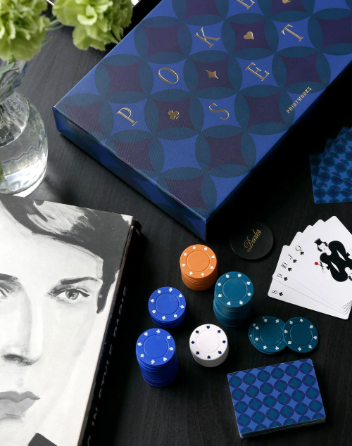 The Classic - Art of Poker, Diamonds showcases an elegant eclectic diamond pattern in rich shades of deep blue and dark green, adding a sophisticated touch to your game nights. This complete set includes high-quality poker chips, professional-grade playing cards, and easy-to-read instructions in English, French, and German. Designed for both casual and serious players, it offers everything needed for hours of thrilling gameplay and stylish entertaining.