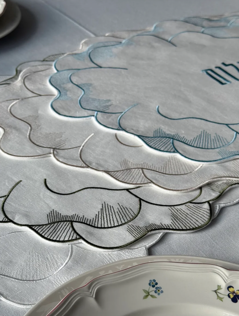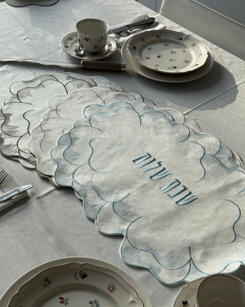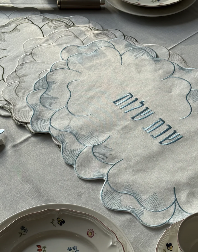 Designed with delicate floral accents and soft tones, this piece brings a sense of peace and sophistication to your Shabbat experience.