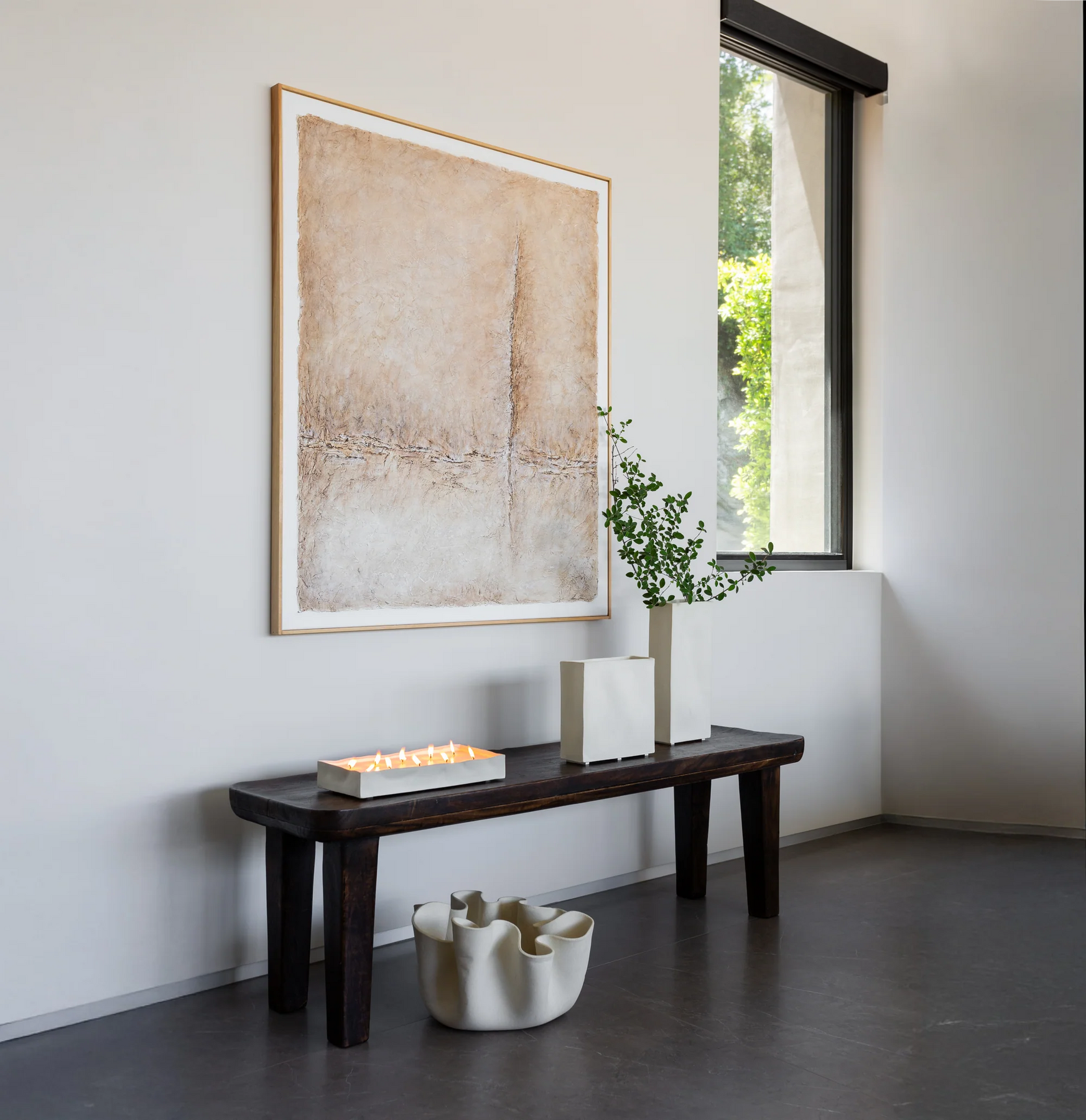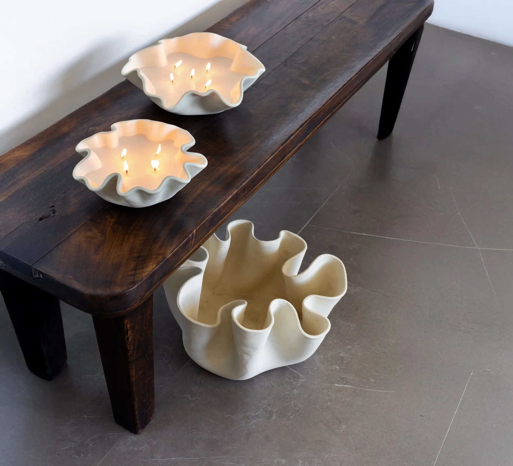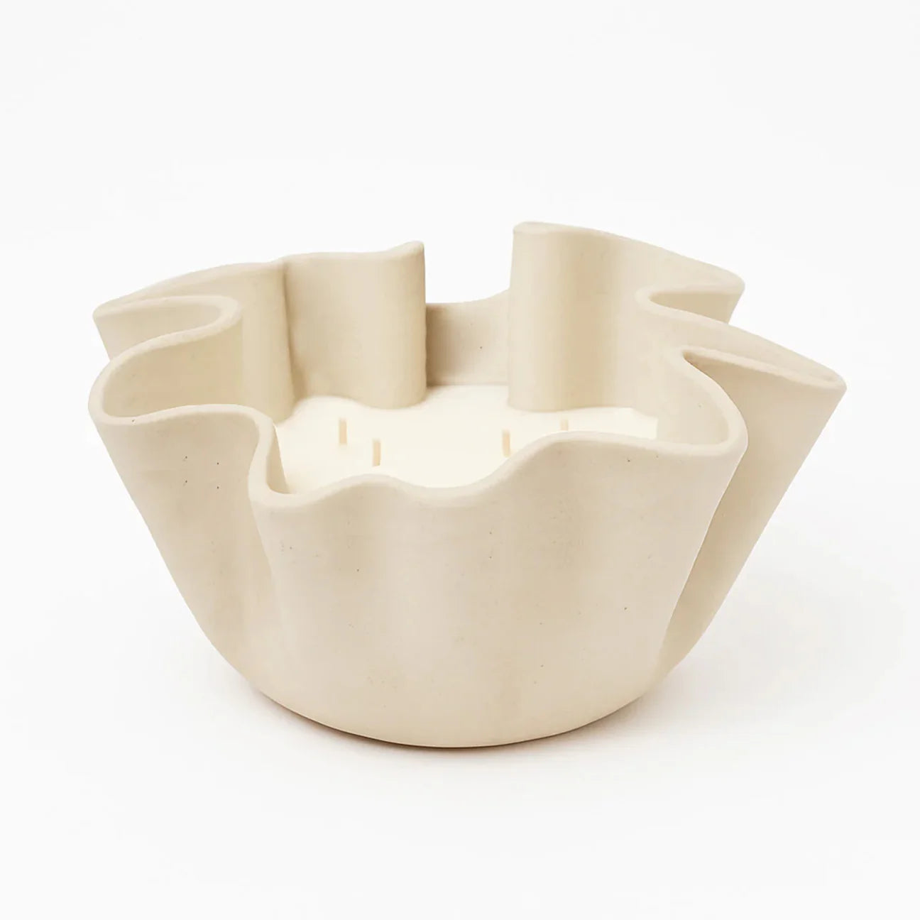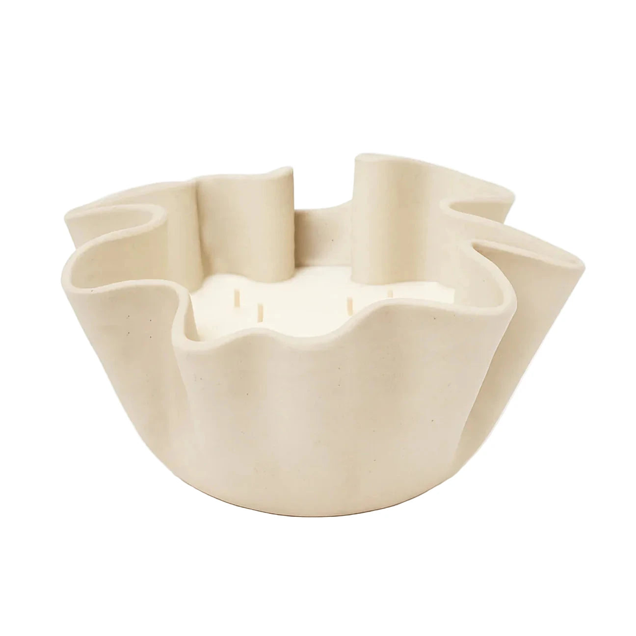 Bold and serene, the Grande Veda Candle in Raw Blanc anchors a room with light and presence. Its wide form and matte surface feel at once generous and soft. Reuse it as a centrepiece bowl or styling object long after the wax has melted away.
